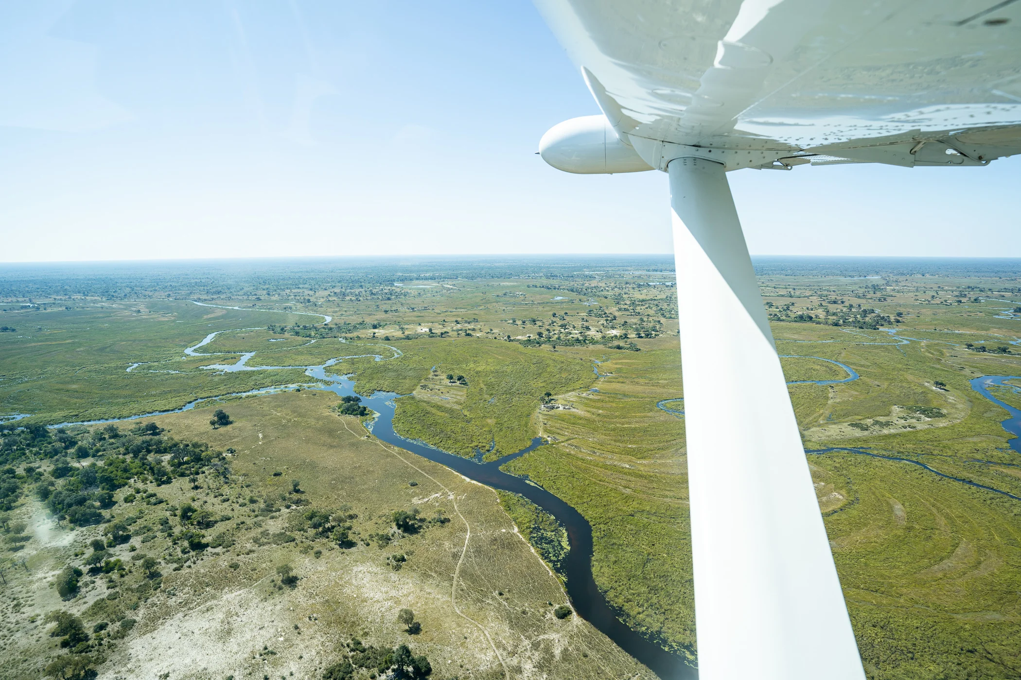 Le Delta de l’Okavango, classé au patrimoine mondial de l’UNESCO, est l’un des derniers grands deltas intérieurs du monde, où la faune sauvage se concentre au rythme des inondations saisonnières.