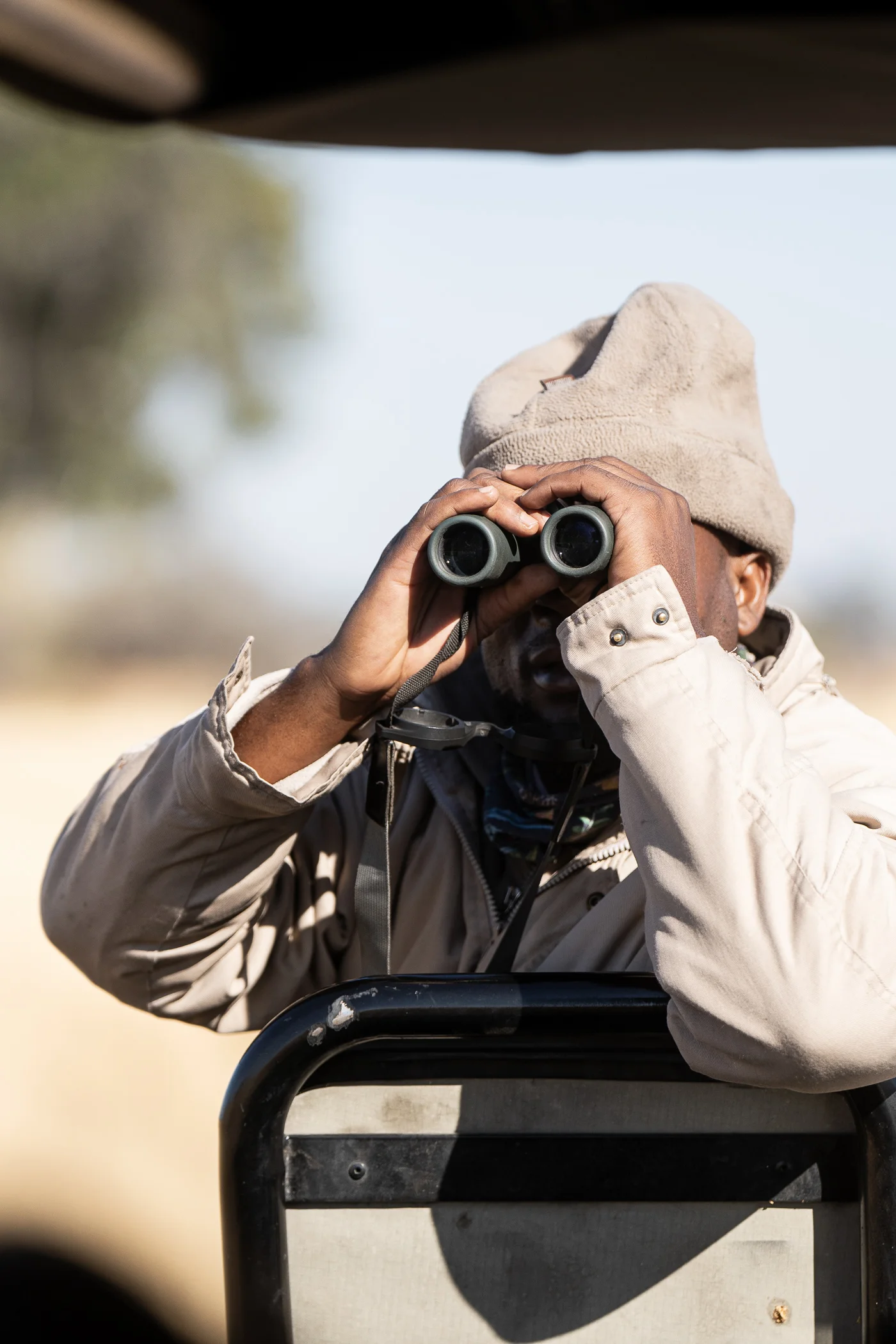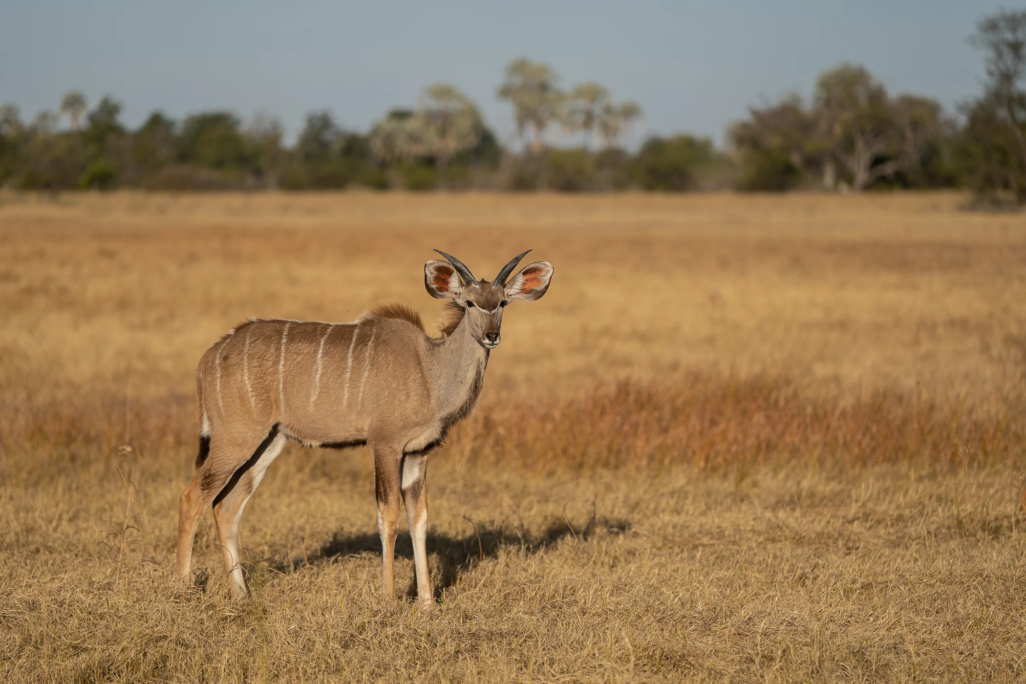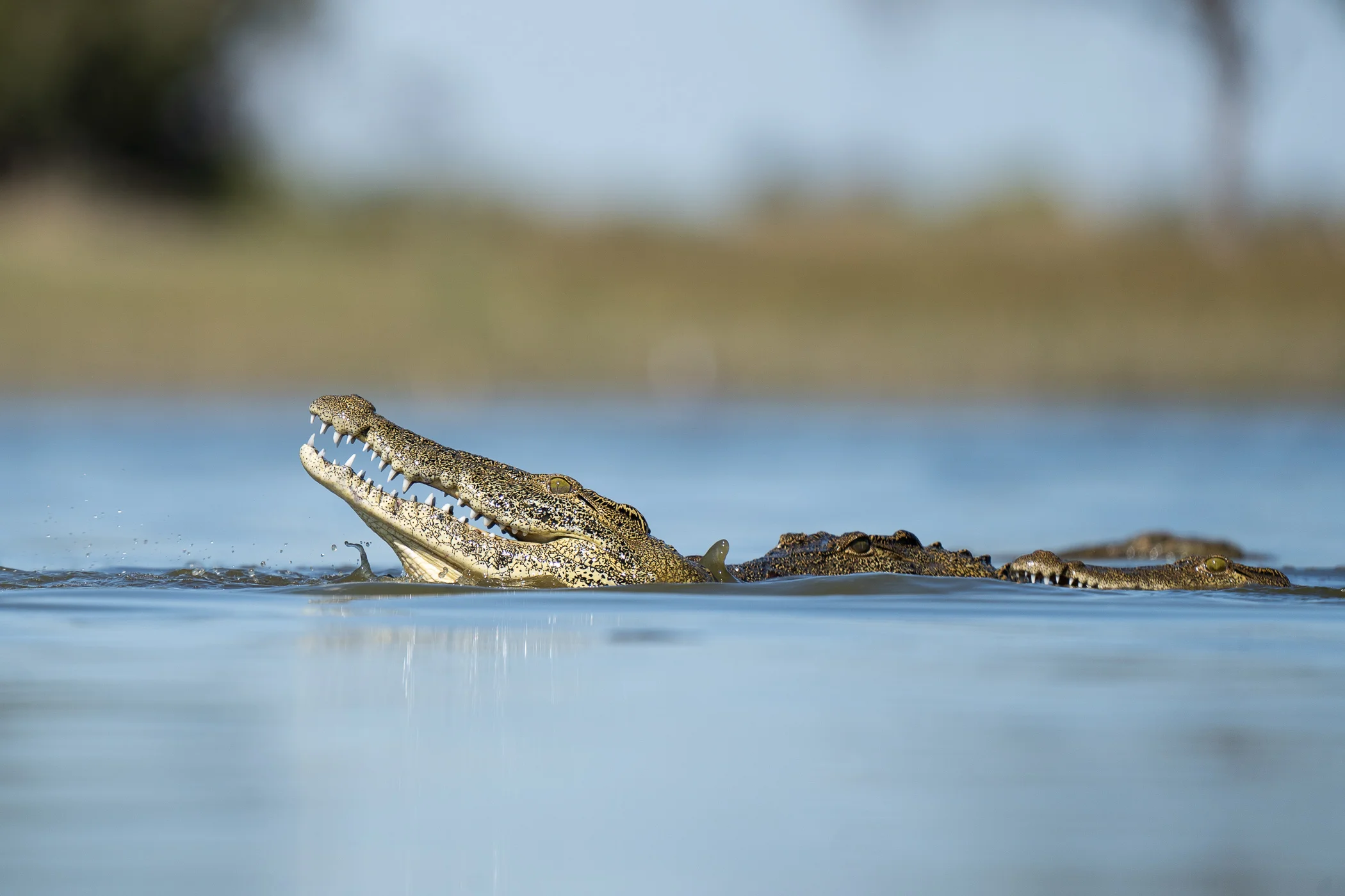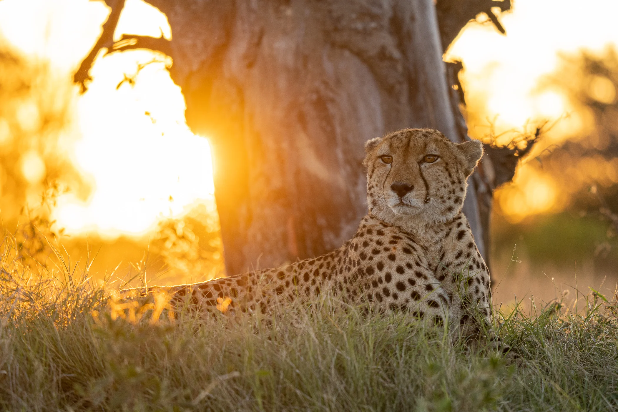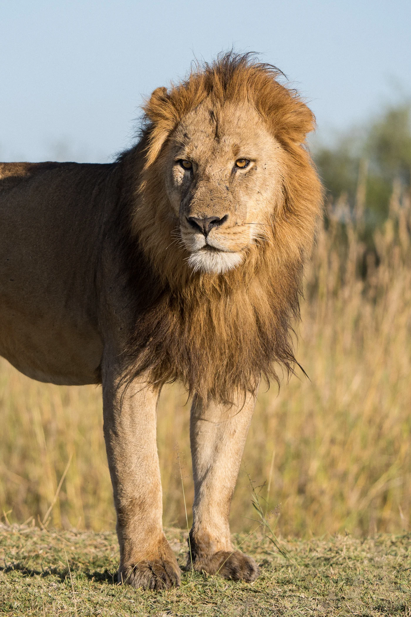 Prédateur emblématique, il règne sur les îles du delta et les plaines sèches, souvent observé en train de chasser ou se reposant à l'ombre.