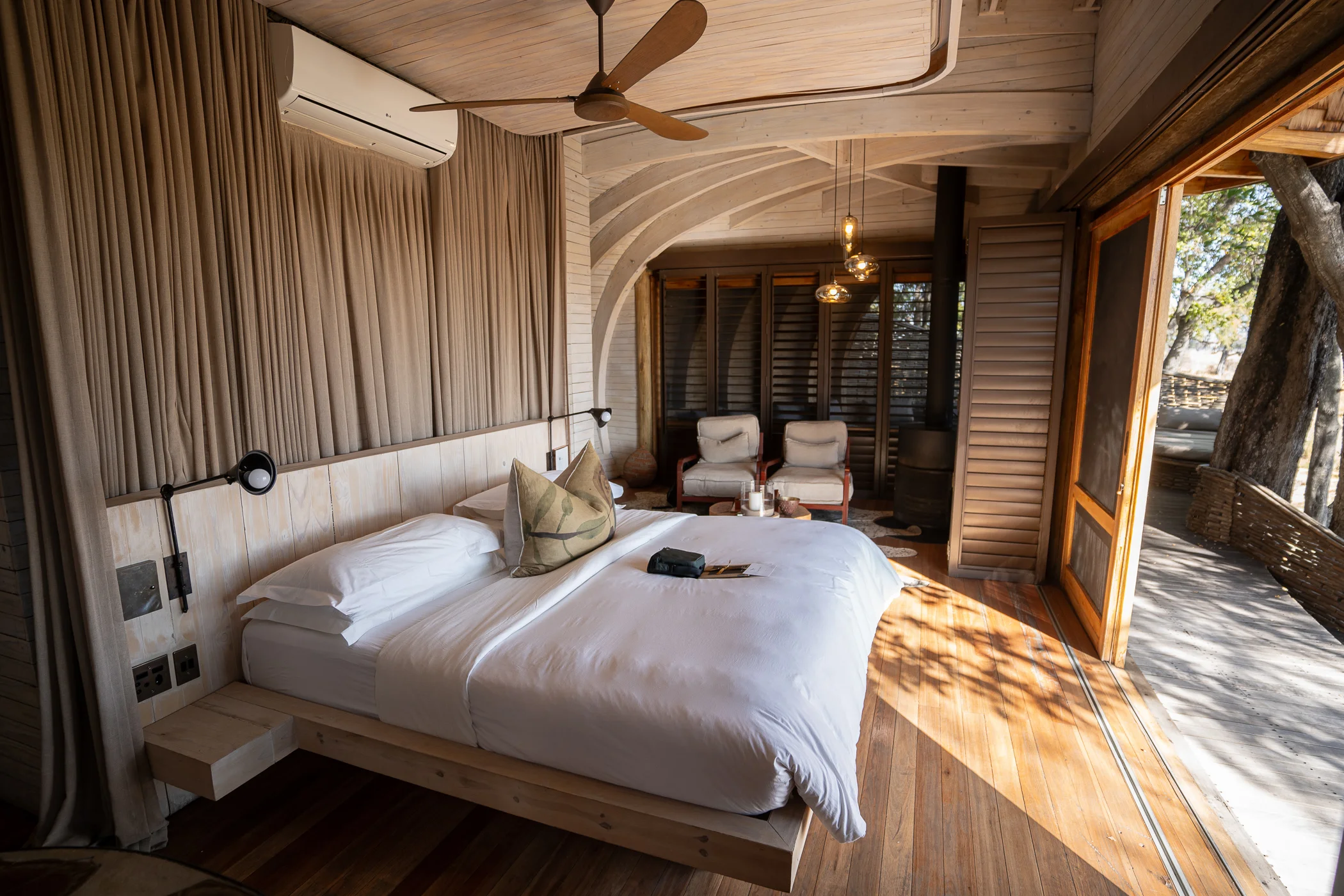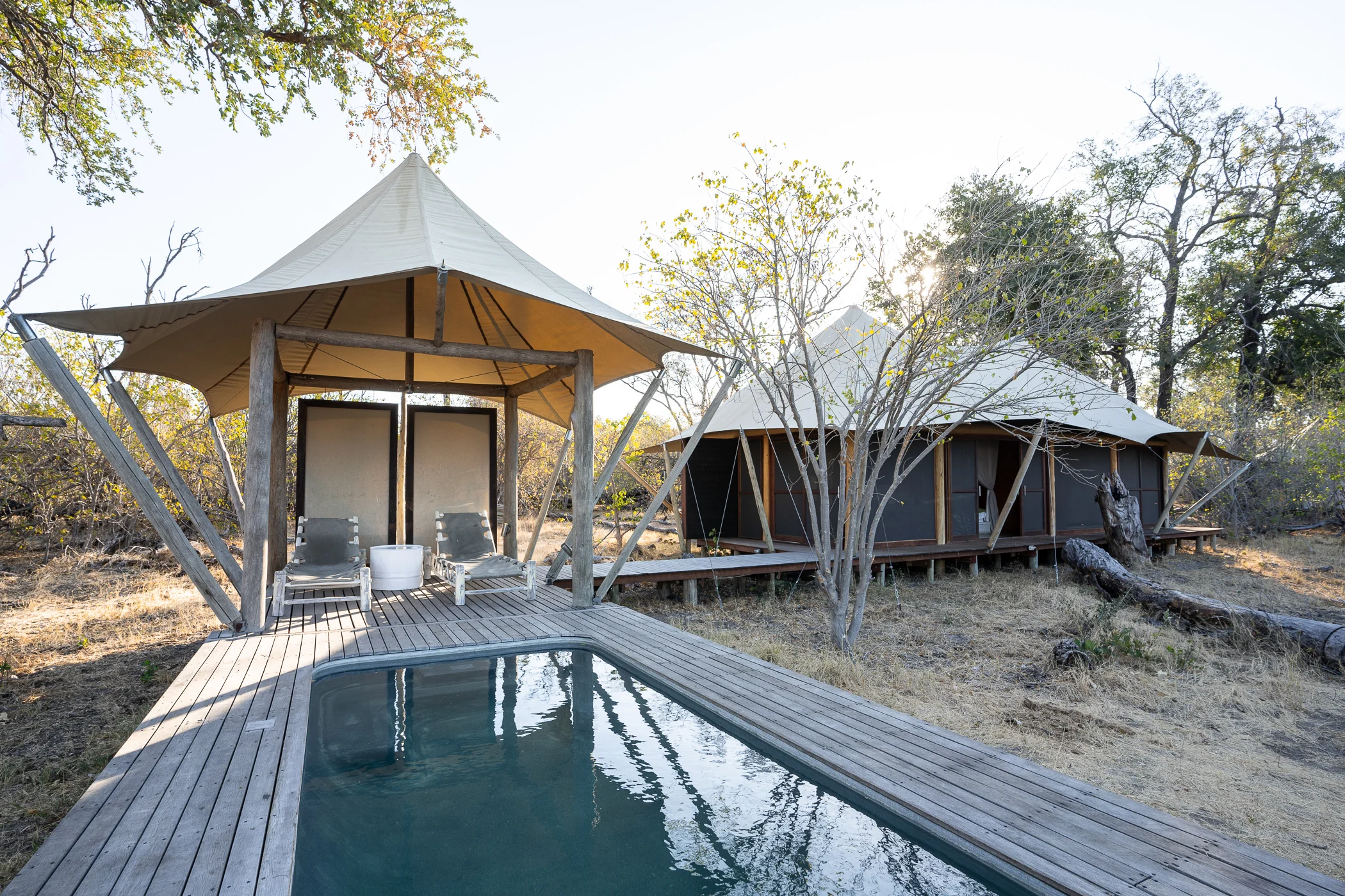 Dans l’Okavango, l’hébergement fait lui aussi partie de l’aventure : on se déplace en campement mobile tout confort, des tentes spacieuses avec salle de bain privée installées chaque soir au coeur de la nature, là où aucun lodge fixe ne peut vous emmener. C’est ce qui rend cet endroit unique, on ne fait pas que l’observer, on le vit vraiment.