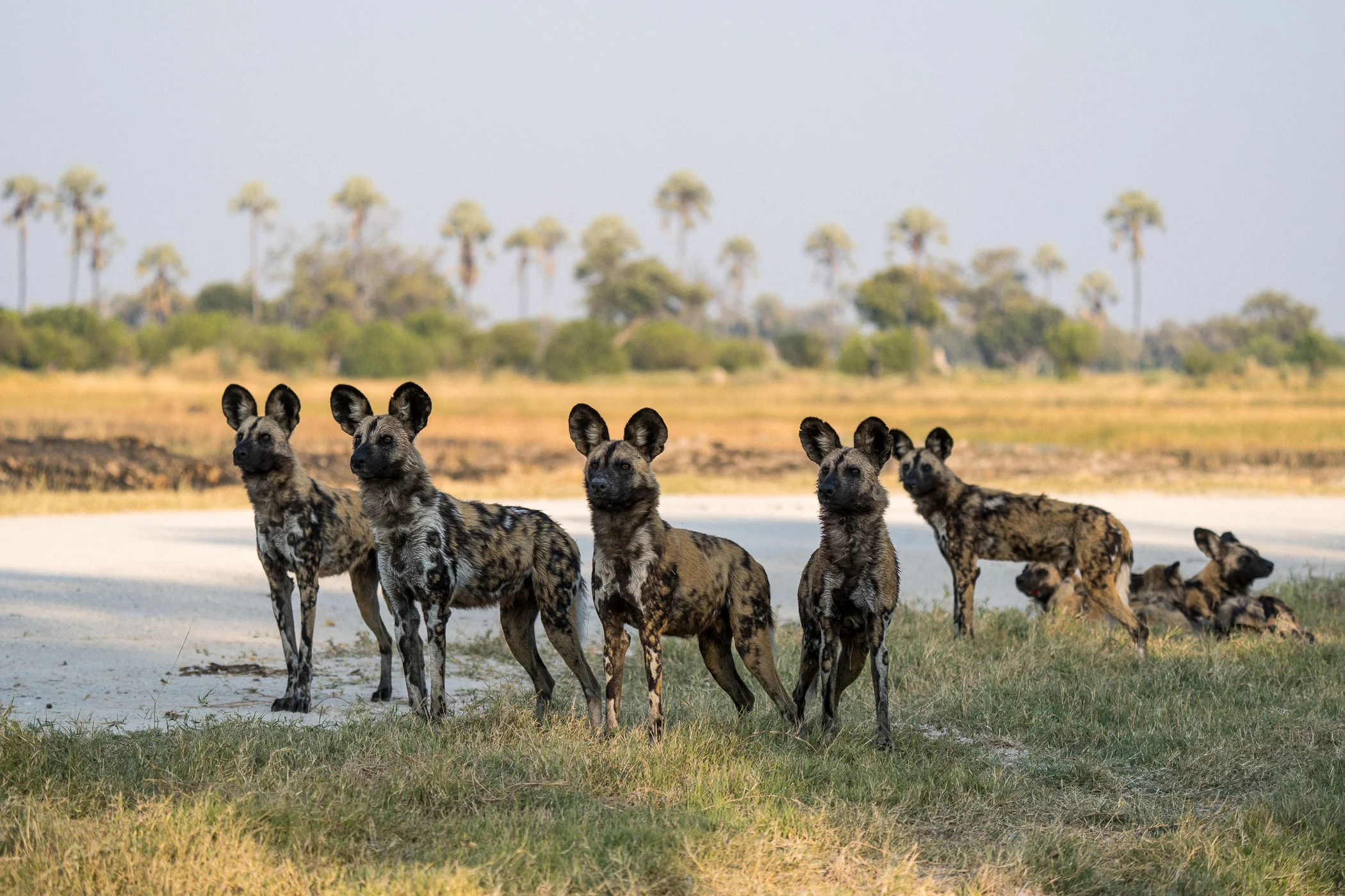 Chasseur redoutable et très sociable, il sillonne les plaines du delta en meutes bien organisées, offrant des scènes de chasse fascinantes.