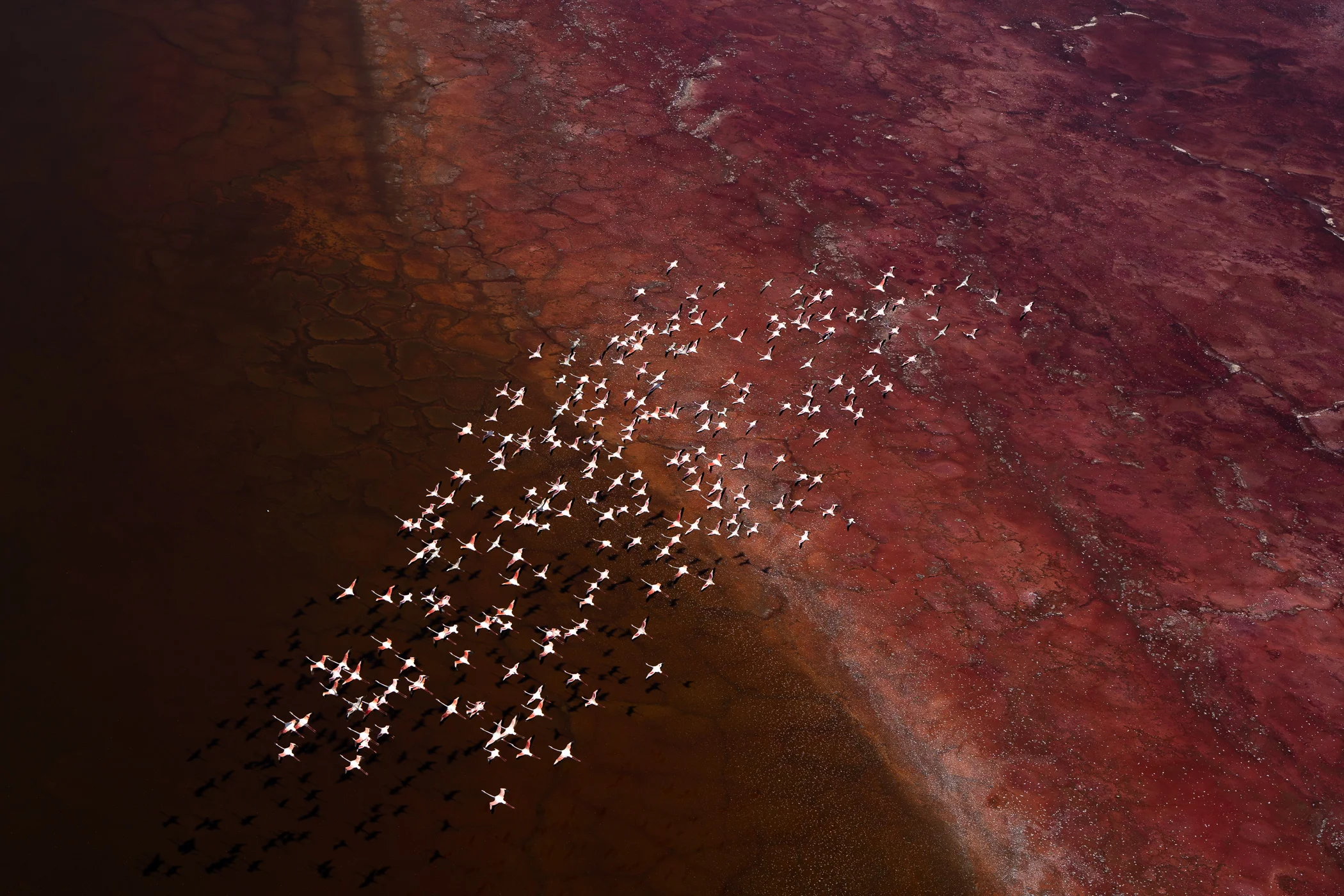 - Survols en hélicoptère au-dessus des lacs Magadi et Natron pour photographier flamants roses et paysages abstraits